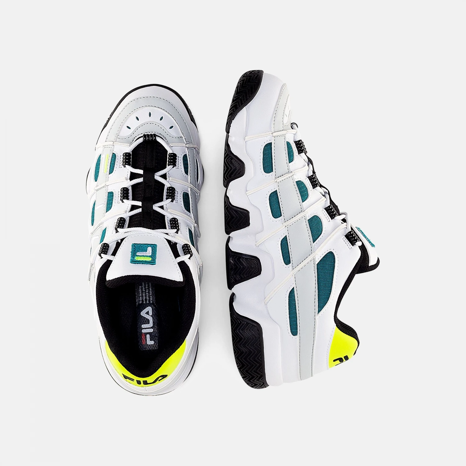 Logo: Gesticktes Linearlogo zwischen den Nähten / F-Box auf der Schuhzunge / Logo an der Ferse